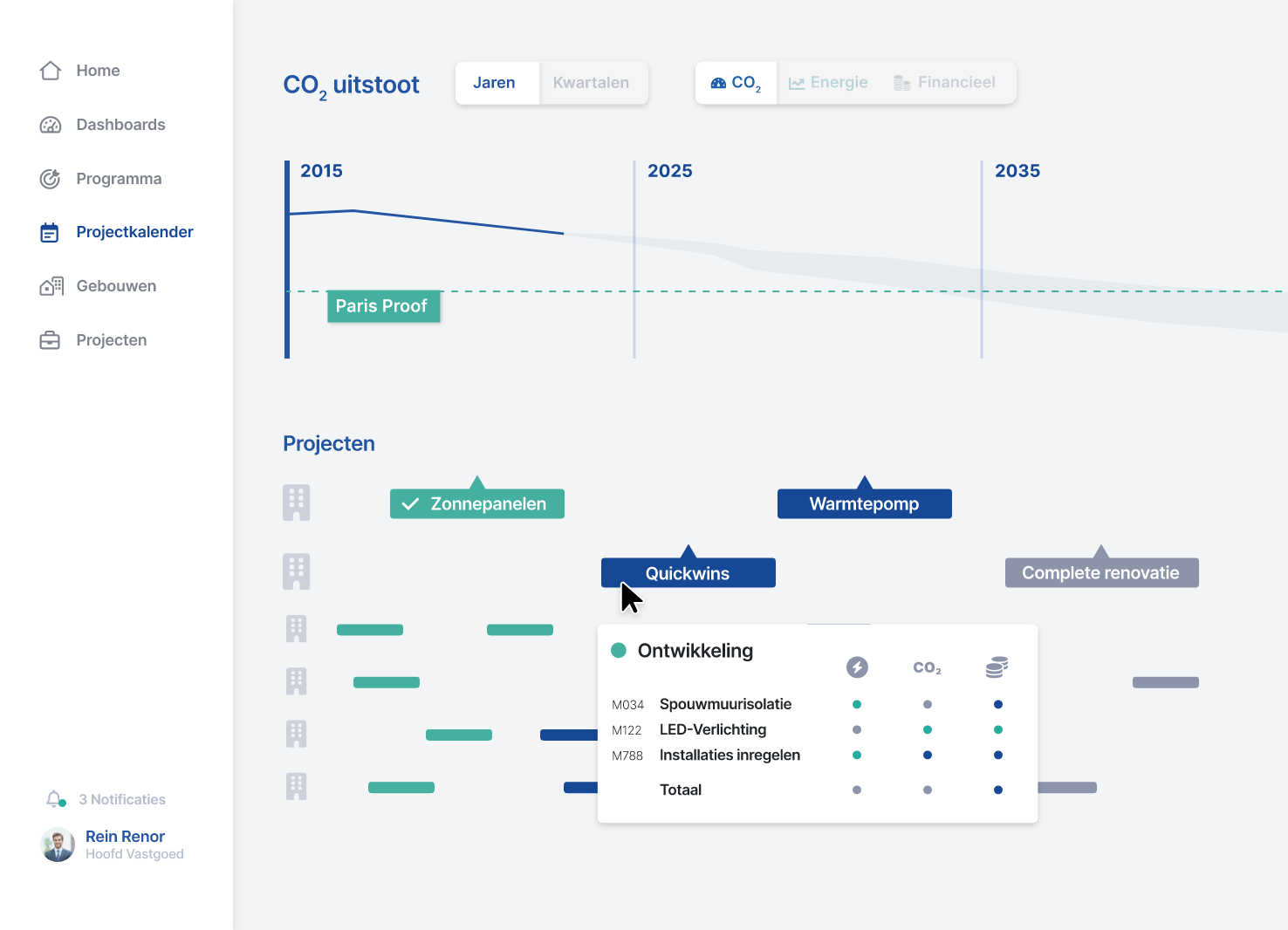 Verduurzaming van vastgoed is een complexe opgave die niet alleen vraagt om strategische visie, maar ook om praktische uitvoering. De Routekaartmanager biedt precies die integrale oplossing: het maakt het mogelijk om strategie en uitvoering in één omgeving samen te brengen. Met slimme simulaties, geautomatiseerde analyses en realtime inzichten kun je weloverwogen keuzes maken en snel bijsturen. Dit platform biedt je niet alleen de tools om je verduurzamingsdoelen te bereiken, maar maakt het ook makkelijker om je processen efficiënter en transparanter te maken.